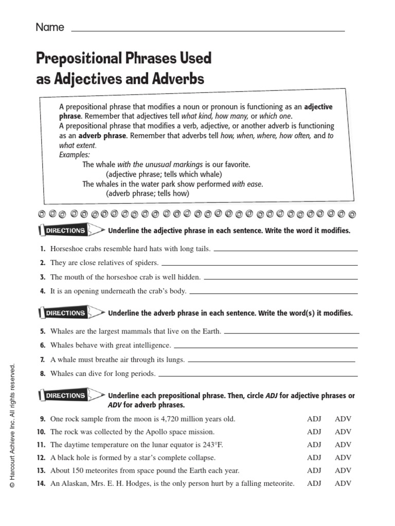 The following text comes from an advertisement for adjustamatic beds: Like adjective phrases, adverbs and adverb phrases can come either before or after the word they modify and are quite forgiving in their placement. But for many people, these words are also easy to mix up. An adjective phrase (or adjectival phrase) is a phrase the head of which is an adjective, almost any grammar or syntax textbook or dictionary of linguistics terminology defines the adjective phrase in a similar way, e.g. Prepositional phrases, participial phrases, and infinitive phrases can all function as an adjective phrase in sentences. A prepositional phrase includes a preposition, its object, and any modifiers of the object. Here are the examples a prepositional phrase can function as an adverb, adjective, or a noun and starts with a preposition. This phrase will include at the very least one adjective along with adverbs or prepositional phrases. It's composed of single or multiple words. Answers adjective and adverb phrases' review sentences 1, 4, 5, 8, 9, 11, 13, 16, 17, and 19 include adjective phrases. Adjectives describe the qualities of people and things. By far the most commonly discussed topic related to adjective phrases is whether to use a hyphen to join an adverb to the head adjective. A noun phrase typically includes a pronoun or a noun and its modifiers.